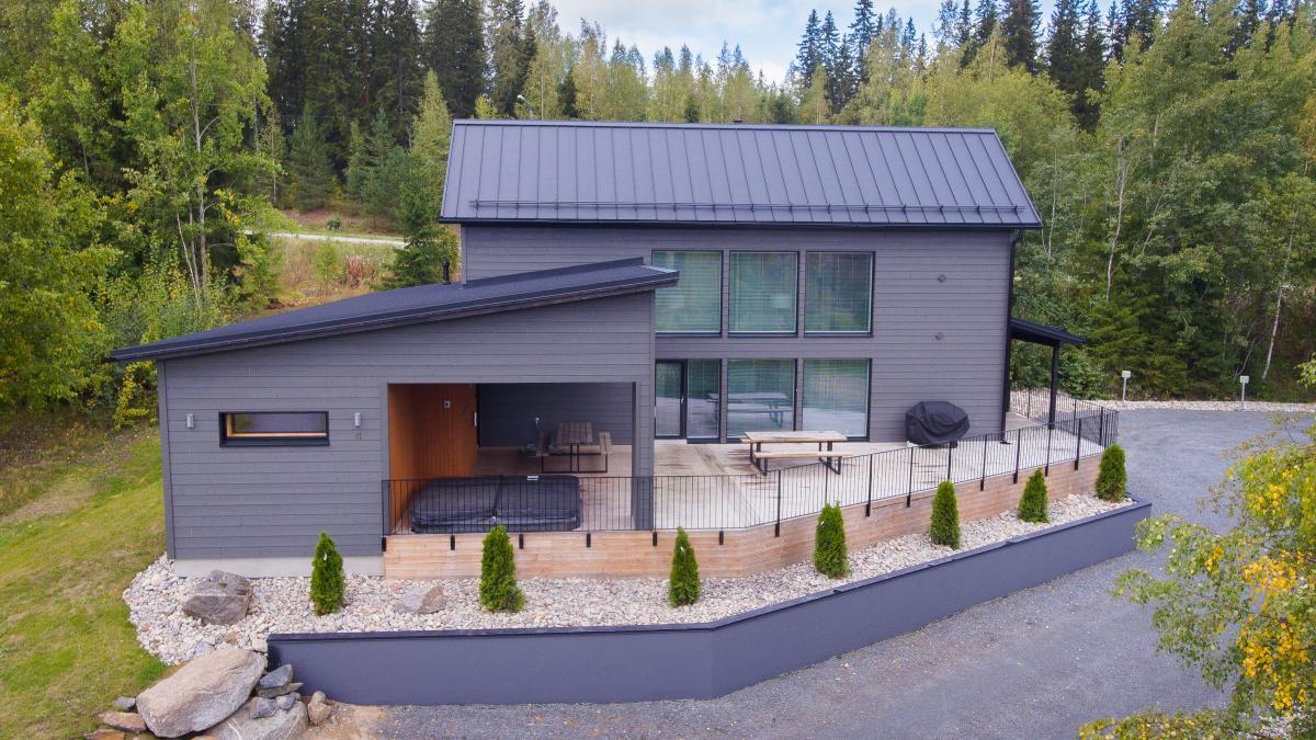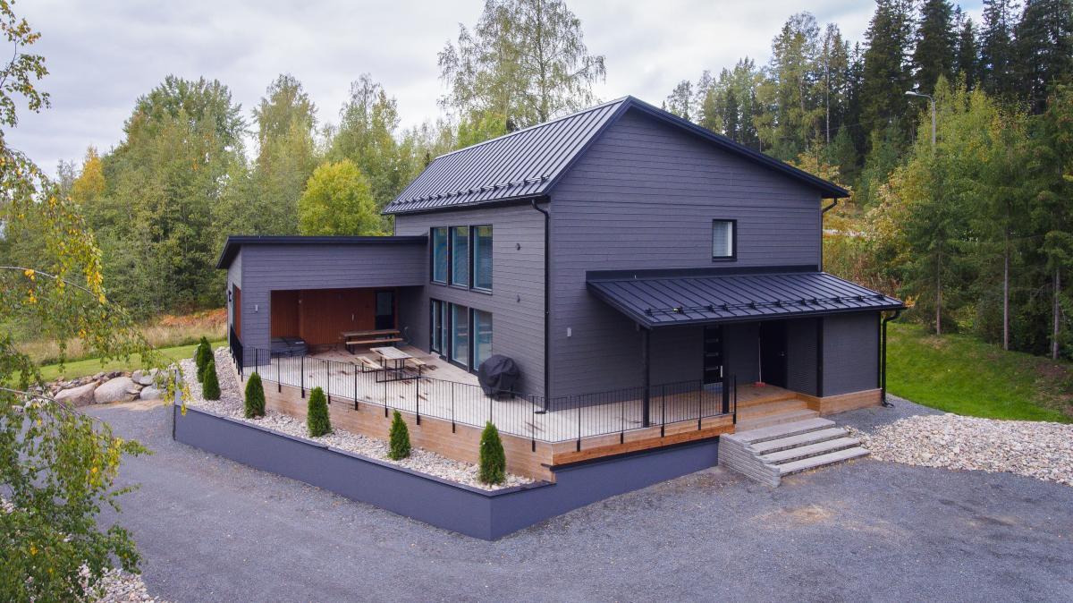 Huvilan ympärillä on näyttävä kuisti, jonka pihakalusteet ovat käytössä kesä- ja syysaikaan sekä kaasugrilli, joka on käytössä ympäri vuoden.
