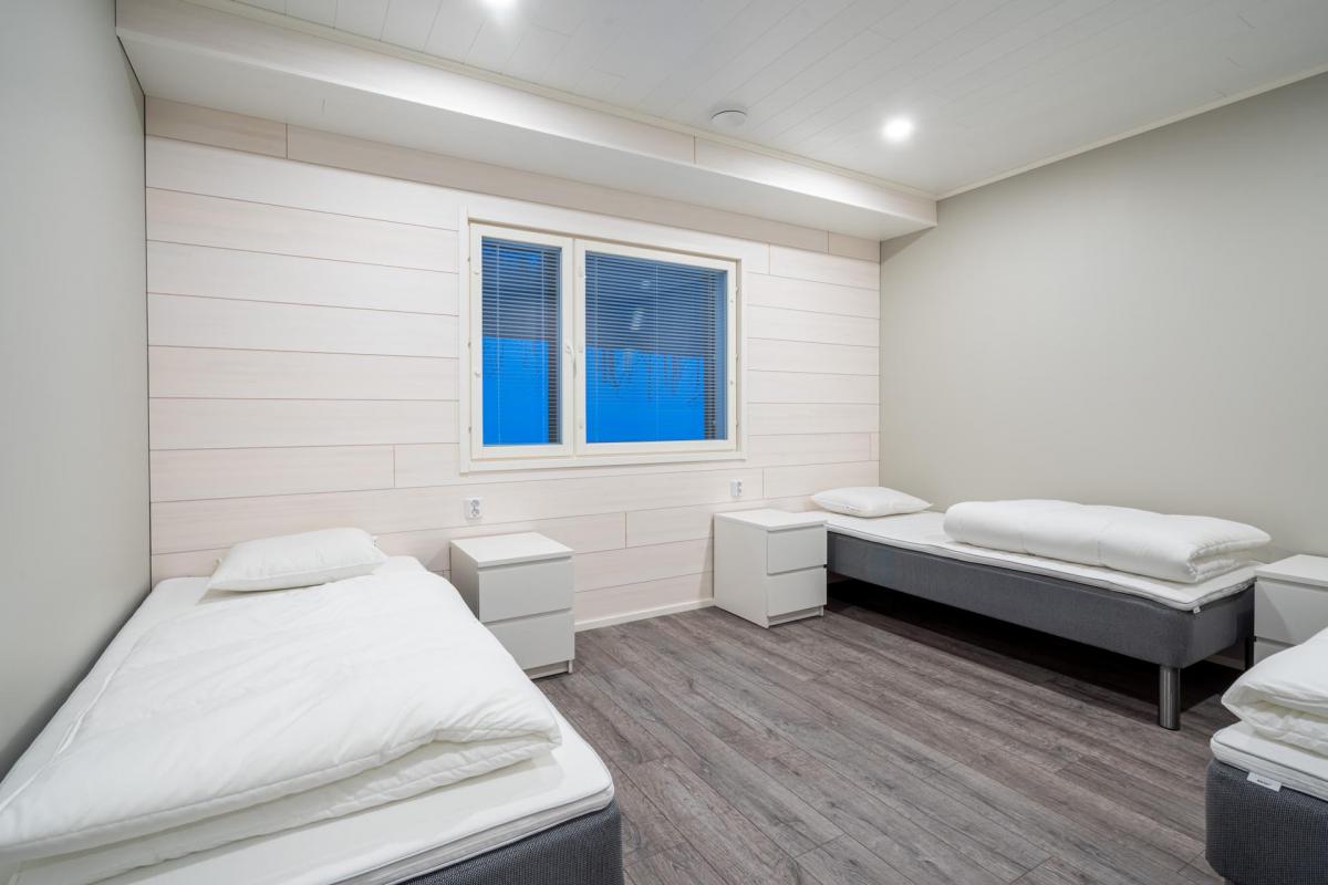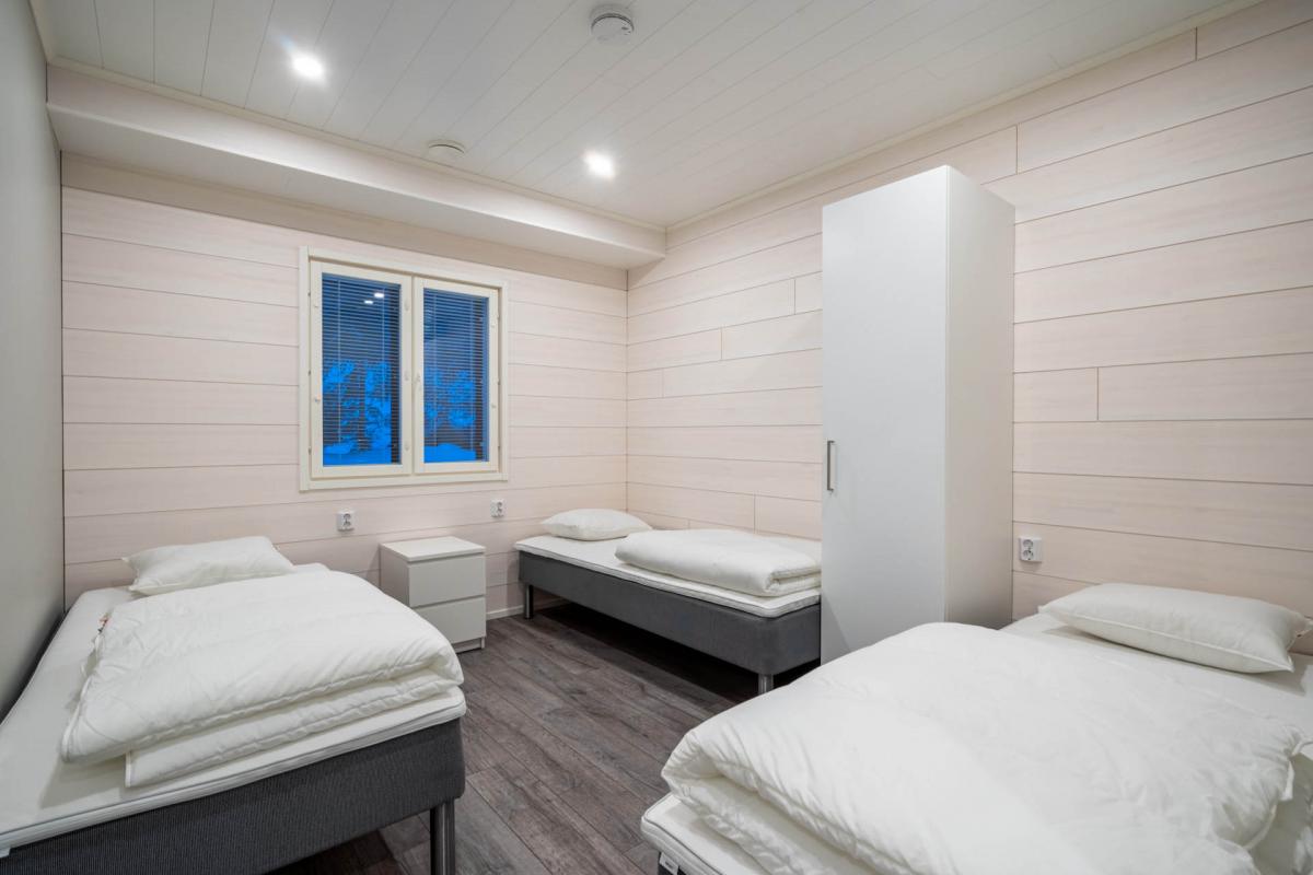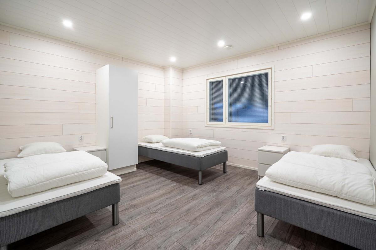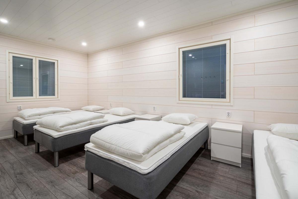 Alakerrassa neljä makuuhuonetta, joista kahdessa on 3 erillistä vuodetta, yhdessä 2 erillistä vuodetta ja yhdessä parisänky.