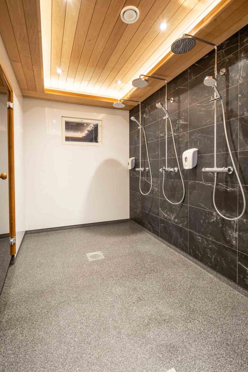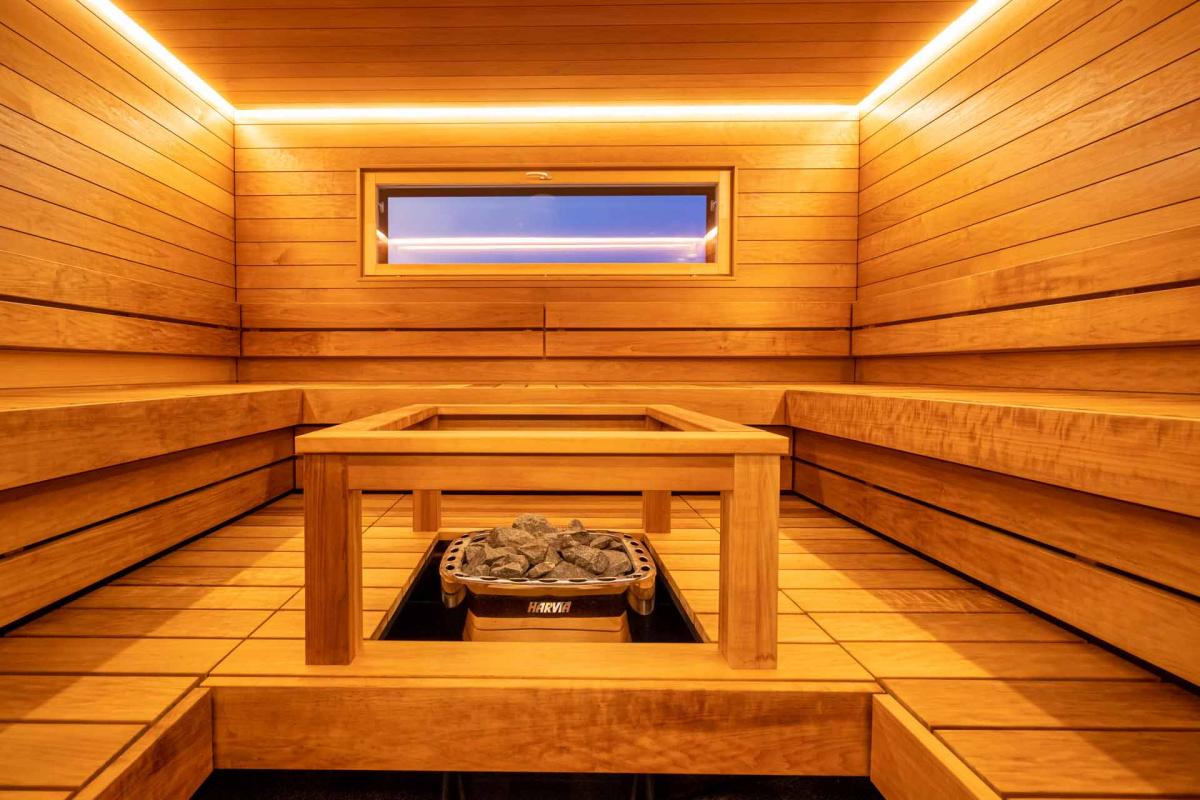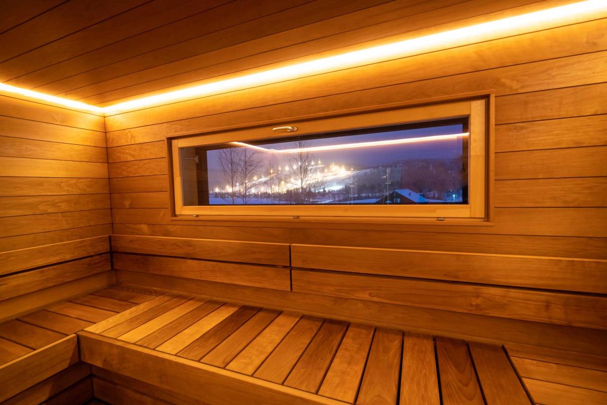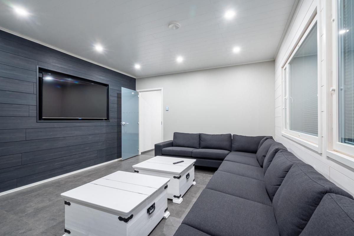 Huvilan sisääntulokerroksessa on myös neljä makuuhuonetta sekä toinen oleskelutila saunan läheisyydessä. Tässä tilassa on viihtyisä sohvanurkkaus sekä televisio. Saunan lauteille mahtuu kerralla jopa yli kymmenen henkeä ja saunatiloista on kulku terassille, jossa on iso ulkoporeallas.