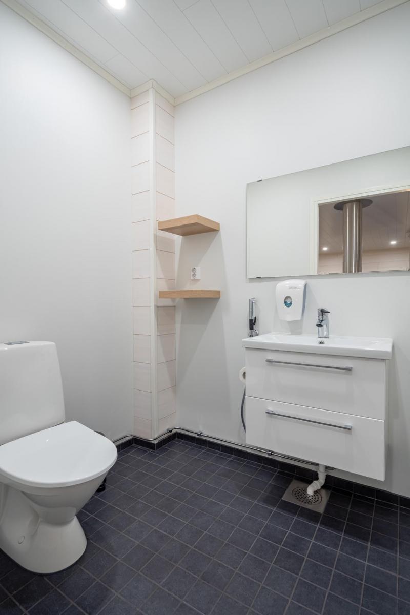 Peitot ja tyynyt, pyykinpesukone, 2 x TV, internet-yhteys, takka, väline- ja puuvarasto, sauna, kesäaikaan käytössä oleva ilmastointi, kaasugrilli (käytössä 1.5.-31.10. välisenä aikana) ja terassikalusteet kesäaikaan. Huvilassa on 4 wc:tä, joista kolme alakerrassa ja yksi yläkerrassa.